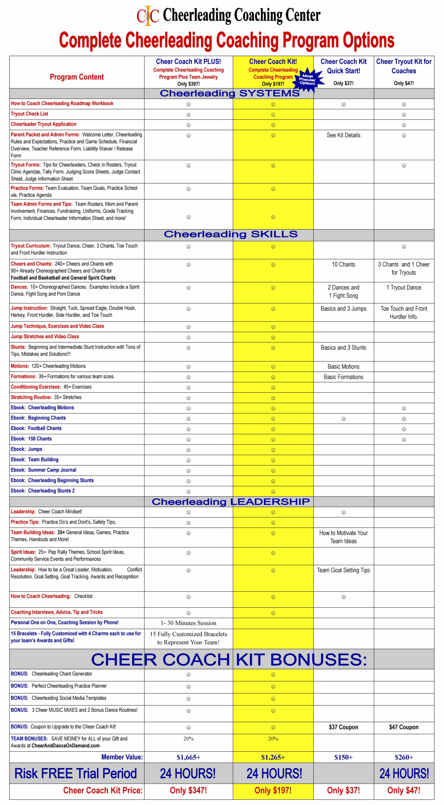If you are not completely satisfied with your membership, just contact us within 24 hours of receiving your Cheer Coach Kit and we will give you a complete refund!